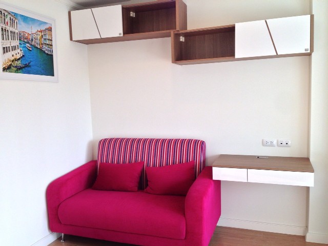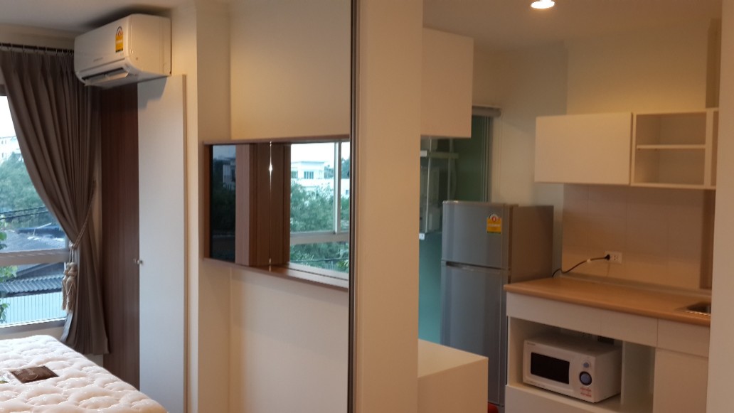 คอนโดให้เช่า...ตกแต่งพร้อมเข้าอยู่ได้เลย !!! LPN (LUMPINI VILLE) พัฒนาการ-เพชรบุรีตัดใหม่ ซอย 26 รายละเอียด - อาคาร A1 ชั้น 4 ตึกหน้าใกล้ถนน ใกล้ร้านสะดวกซื้อ 7-11 เพียง 15 เมตรจากอาคาร - ขนาด 26 ตรม. ( ห้องนั่งเล่น ห้องนอน ห้องครัว ห้องน้ำ ระเบียง) - โครงการมี ห้องอ่านหนังสือ สวนหย่อม ห้องออกกำลังกาย และสระว่ายน้ำ (ไม่เสียค่าใช้จ่าย) - มี เครื่องซักผ้า และ เครื่องกดน้ำดื่มด้านล่างอาคาร - มี รปภ. 24 ชม. พร้อมกล้อง CCTV เข้าออกด้วย Key card - ที่จอดรถ - ดูข้อมูลโครงการและสิ่งอำนวยความสะดวกได้ที่ http://www.lpn.co.th/lumpini2011/LV-pnp/project.php สถานที่ใกล้เคียง - ติดถนนพัฒนาการ ปากซอย พัฒนาการ 26 - ใกล้มหาวิทยาลัยรามคำแหง / มหาวิทยาลัย ABAC - ใกล้ห้างสรรพสินค้า The mall ราม / Big-C ราม / Tesco Lotus พัฒนาการ - ตรงข้ามเยื้องๆกับอู่รถเมล์สาย 92 - ใกล้ถนนพระราม 9 จุดขึ้น-ลงทางด่วนพิเศษฉลองรัช ระยะทาง 1.3 กม. - รถไฟฟ้า Airport Link สถานีรามคำแหง ตรงแยกคลองตัน ระยะ 2 กม. (มีรถตู้โครงการรับส่งคิดค่าบริการ 30 บาท ช่วงเช้า) - รถไฟฟ้า BTS สถานีพระโขนง ระยะทาง 5 กม. - รถไฟฟ้า MRT สถานีเพชรบุรี ระยะทาง 6 กม. เฟอร์นิเจอร์ตกแต่งพร้อมอยู่ ห้องนอน : เป็นหน้าต่างกระจกบานสไลด์ / ผ้าม่านจีบผ้ากัน UV /เตียงนอน 5ฟุต พร้อมที่นอน Pocket spring หนา 12 นิ้ว / ผนังหัวเตียงติด Wall paper / โต๊ะวางโคมไฟหัวเตียงมีลิ้นชัก พร้อมโคมไฟหัวเตียง/ ตู้เสื้อผ้าบิวอินท์ / เคาน์เตอร์วางเครื่องสำอาง+กระจก / แอร์ - ห้องนั่งเล่น : กั้นพื้นที่จากห้องนอนด้วยกระจกบานสไลด์ / โซฟา 1.5 เมตรพร้อมปรับเอนได้ / โต๊ะทำงานมีลิ้นชักพร้อมเก้าอี้ / ตู้แขวนลอย 3 ตู้ / ชั้นวางทีวี / ทีวี / โทรศัพท์สายในต่อตรงถึงสำนักงานนิติบุคคล / แอร์ - ห้องครัว : เคาน์เตอร์ครัวพร้อมตู้ลอย / โต๊ะกินข้าวมีลิ้นชักพร้อมเก้าอี้สตูลเก็บของได้ / ม่านม้วนผ้ากัน UV/ ตู้เย็น / เตาไมโครเวฟ - ห้องน้ำ : อ่างล้างหน้า / ชักโครก / ฉากกระจกกั้นห้องอาบน้ำ / ฝักบัว / เครื่องทำน้ำอุ่น - ระเบียง : ราวตากผ้า / ส่วนซักล้าง เครื่องใช้ไฟฟ้า ... ตามรูป (ของใหม่ทั้งห้องประหยัดไฟเบอร์ 5 ) - แอร์ Mitsubishi รุ่นประหยัดไฟ ECONO ประหยัดไฟมากว่าเบอร์ 5, 9000BTU (2 เครื่อง) - ทีวี Sony LED 32 นิ้ว สามารถต่อ USB เพื่อดูไฟล์รูป/เพลง/วีดีโอ ได้อัตโนมัติ - ตู้เย็น Sharp 5.9 คิว 2 ประตู ระบบ No Frost น้ำแข็งไม่เกาะ - ไมโครเวฟ Sharp 22ลิตร - เครื่องทำน้ำอุ่น Sharp 3500W ฟักบัวปรับระดับความแรงน้ำได้ อัตราค่าเช่า - ค่าเช่ารายเดือน 8,000 บาท - รวมค่าส่วนกลาง (700 บาท) แล้ว - แต่ยังไม่รวมค่าจอดรถ 300 บาท (ถ้าไม่มีรถก็ไม่ต้องจ่าย) - ค่าไฟจ่ายตรงกับการไฟฟ้าฯ, ค่าน้ำจัดเก็บ 3 เดือนครั้ง หน่วยละ 15 บาทชำระที่นิติบุคคล (ผู้เช่าเป็นผู้รับผิดชอบ) - สัญญาขั้นต่ำ 1 ปี - จ่ายค่าเช่าล่วงหน้า 1 เดือน + เงินประกั