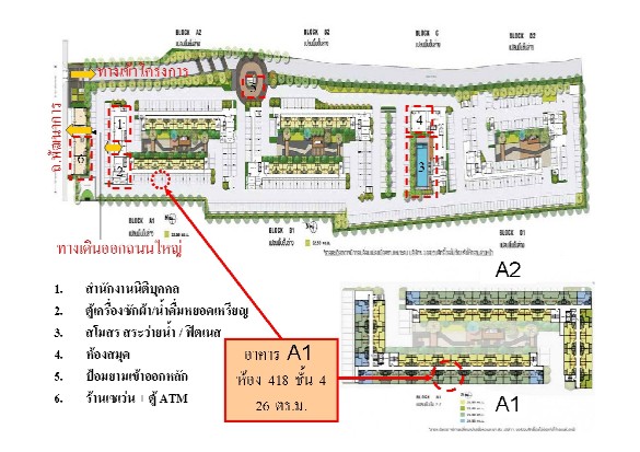 ให้เช่าคอนโด ลุมพินี บดินเดชา ราม ตึก A4 ชั้น 6