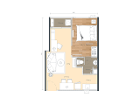ห้องนอน 1 ห้องน้ำ 1 ห้องนั่งเล่น 1 ห้องครัวกั้นเป็นส่วน 1 แอร์