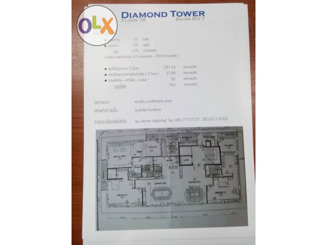 ขายด่วน Penthouse Condo Diamond Tower สีลมซอย 7 พื้นที่ใช้สอยสุทธิ 393 ตร.เมตร พร้อมเข้าอยู่หรือเก็งกำไร เจ้าของขายเอง ราคา 55 ล้านบาทเท่านั้น ก่อนปรับราคาขึ่นตามราคาประเมินใหม่ ติดธนาคารกรุงเทพ สนง.ใหญ่ เดินทางสะดวกมาก โทรด่วนคุณฉันท์