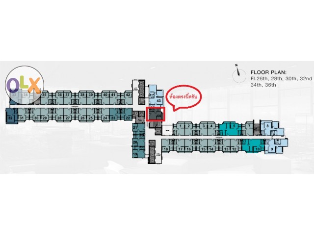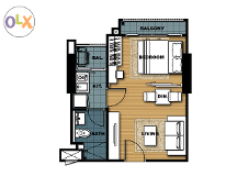 ห้อง 44 ชั้น 26 พื้นที่ 30 ตารางเมตร 1 ห้องนอน