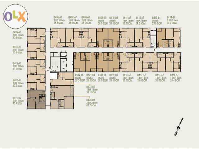 คอนโด อินสไปร์เพลส พระราม 9 พื้นที่ 57.2 ตร.ม.