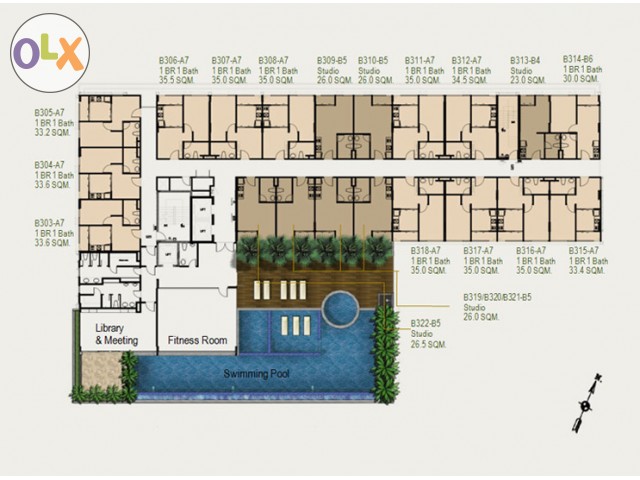 MayFair Place สุขุมวิท 64 ชั้น 4 วิวสระว่ายน้ำ อาคาร B ชั้น 4 ห้อง 419 ขนาด 26 ตรม
