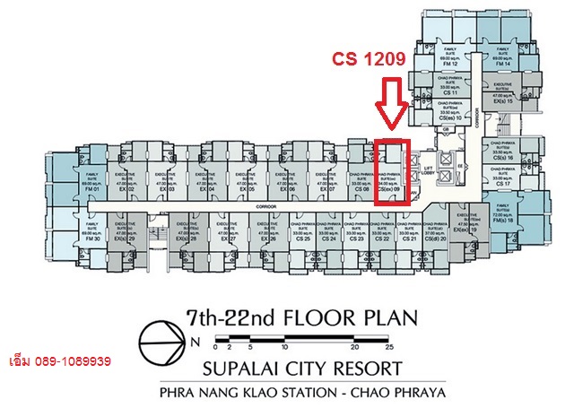 ขายดาวน์ 1bed 34 ตร.ม. ห้อง 1209 (ศุภาลัย ซิตี้ รีสอร์ท สถานีพระนั่งเกล้า – เจ้าพระยา) เอ็ม 089-1089939