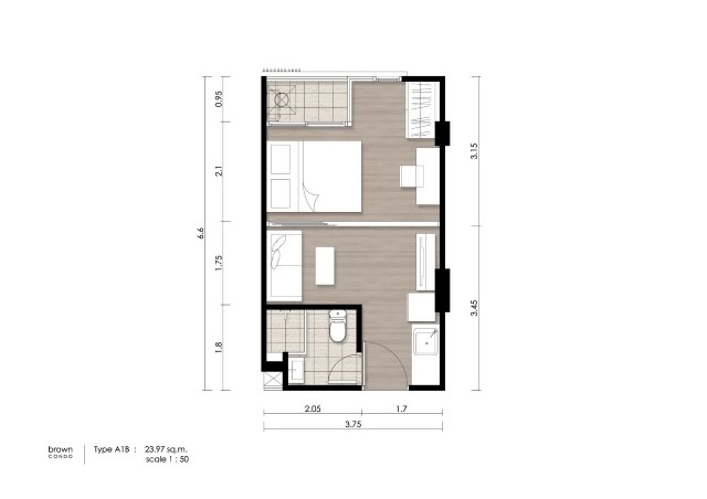 ขนาดพื้นที่ 23.0 ตารางเมตร