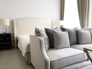เฟอร์นิเจอร์: เคานเตอร์ครัว โต๊ะอาหารพร้อมเก้าอี้ ตู้วางของ โซฟาและโต๊ะกลาง เตียงพร้อมฟูก ตู้หัวเตียง โซฟาภายในห้อง