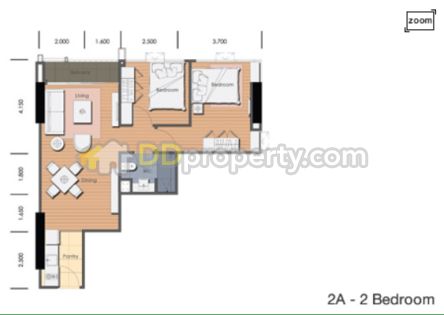2 ห้องนอน 1 ห้องน้ำ เนื้อที่ 57.77 ตร.ม.