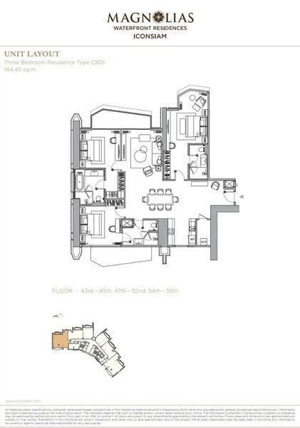 ขาย คอนโด 3 ห้องนอน Magnolias Waterfront Residences ICONSIAM 146.09 ตรม. คอนโดสุดหรูริมน้ำ ราคาดี วิวเทพ