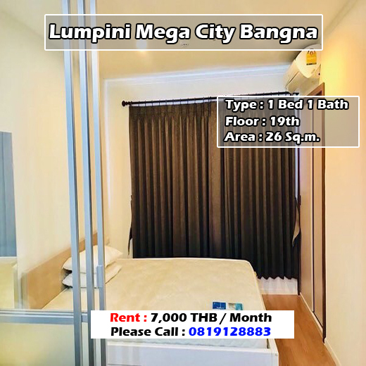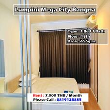 ให้เช่า ลุมพินี เมกะซิตี้ บางนา 1 ห้องนอน 1 ห้องน้ำ ราคา 7000 บาท BTS บางนา