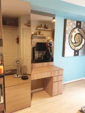 1. เฟอร์บิ้วอิน ตู้แขวนเสื้อผ้าพร้อมกระจก+ ตู้เก็บของเพิ่มเติม + โต๊ะนั่งทำงาน + ชั้นวางของติดผนังแนวสูง