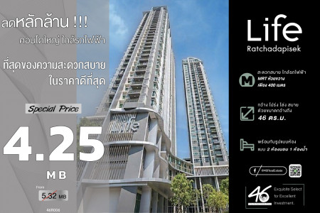 ขาย คอนโด 2 นอน Life รัชดาภิเษก 46 ตรม. ราคาถูกที่สุดในตึก ณ ตอนนี้