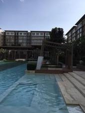 บรรยากาศ ร่มรื่นเงียบสงบ สระว่ายน้ำขนาดใหญ่