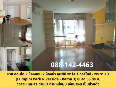 ขาย คอนโด ขนาด 2 ห้องนอน 2 ห้องน้ำ ตำแหน่งมุม เงียบสงบ เป็นส่วนตัวLUMPINI PARK ริเวอร์ไซด์ - พระราม 3 56 ตรม.