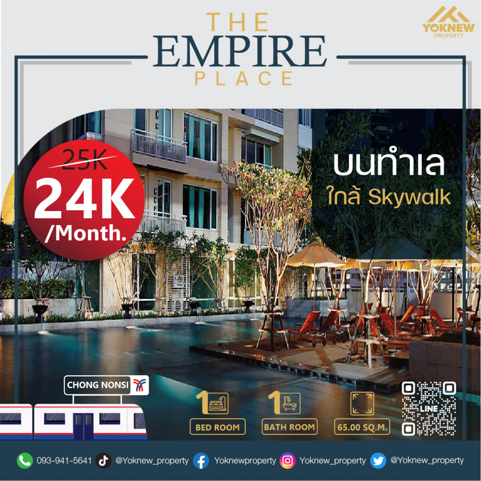 Code PS12082222.......The Empire Place สำหรับเช่า 1 ห้องนอน 1 ห้องนำ้ 65 ตร.ม. ชั้นสูง 27K
