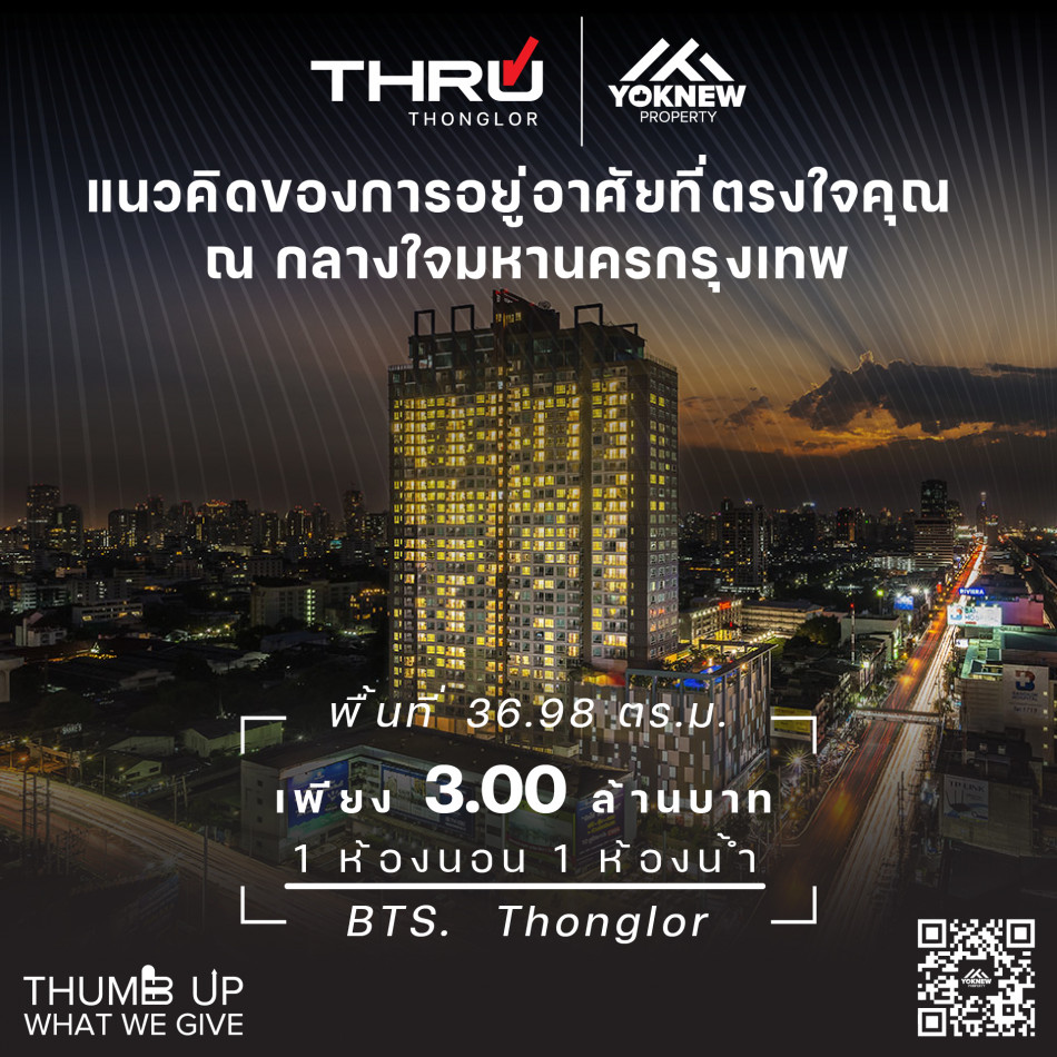 ขายถูก Thru Thonglor ห้องสวย เดินทางสะดวกด้วย BTS สถานีทองหล่อ
