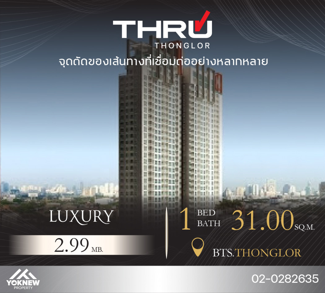 ขายด่วนเลย Thru Thonglor ห้องสวยรูปแบบใหม่ ไม่บล็อควิว