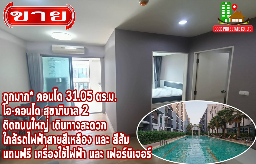 ขาย คอนโด ติดถนนใหญ่ ใกล้ท่าเรือคลองแสนแสบiCondo Sukhapiban 2 : ไอ คอนโด สุขาภิบาล 2 31.05 ตรม.แถมฟรี เครื่องใช้ไฟฟ้า และ เฟอร์นิเจอร์