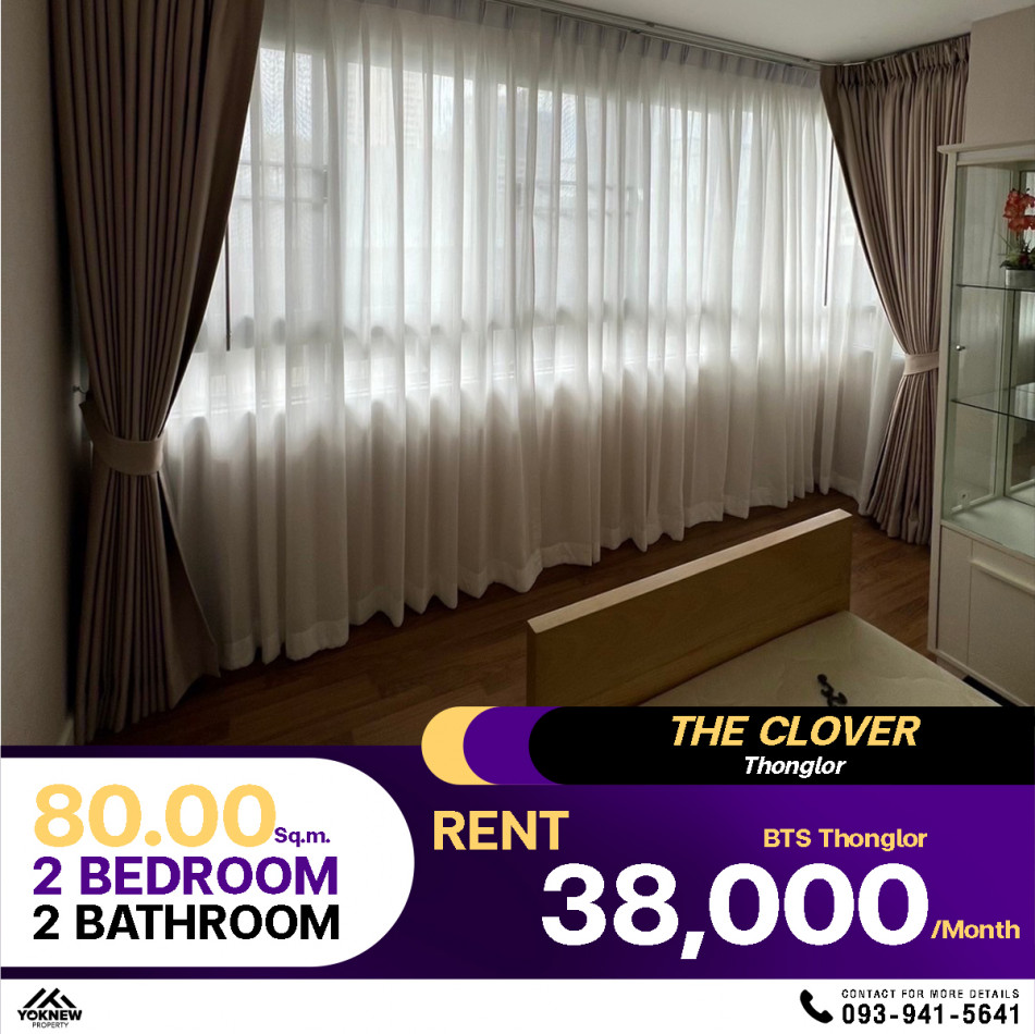 ว่างให้เช่า 2 ห้องนอน 2 ห้องน้ำ คอนโด The Clover Thonglor เดินทางสะดวกสบายใกล้ BTS ทองหล่อ