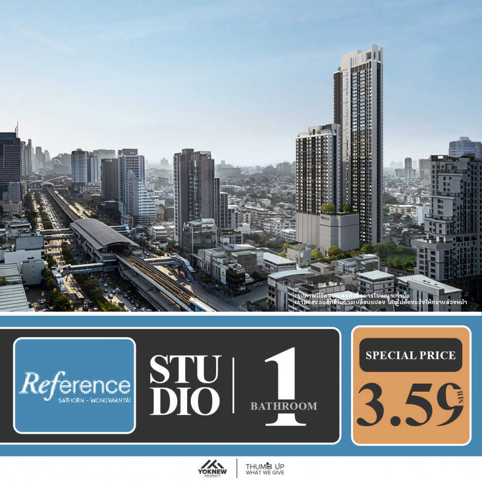 ขายถูกมาก ห้องสตูดิโอ 1 ห้องน้ำ Reference Sathorn - Wongwianyai ติด BTS วงเวียนใหญ่