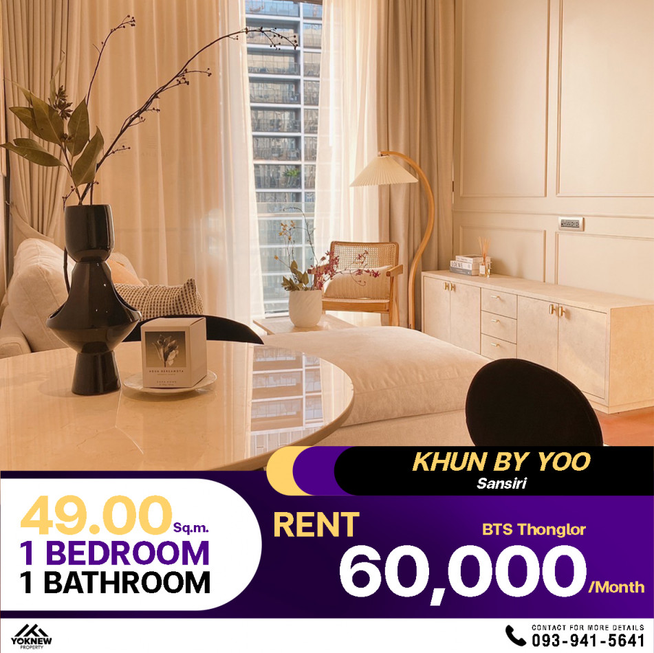 ว่างให้เช่า Khun by yoo Sansiri ห้องตกแต่งได้อย่างสวยงาม พร้อมเข้าอยู่สุดๆใกล้ BTS ทองหล่อ