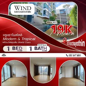 ว่างเช่าราคาดีคอนโด Wind Ratchayothin ห้องกว้างขวาง เฟอร์นิเจอร์ครบครัน