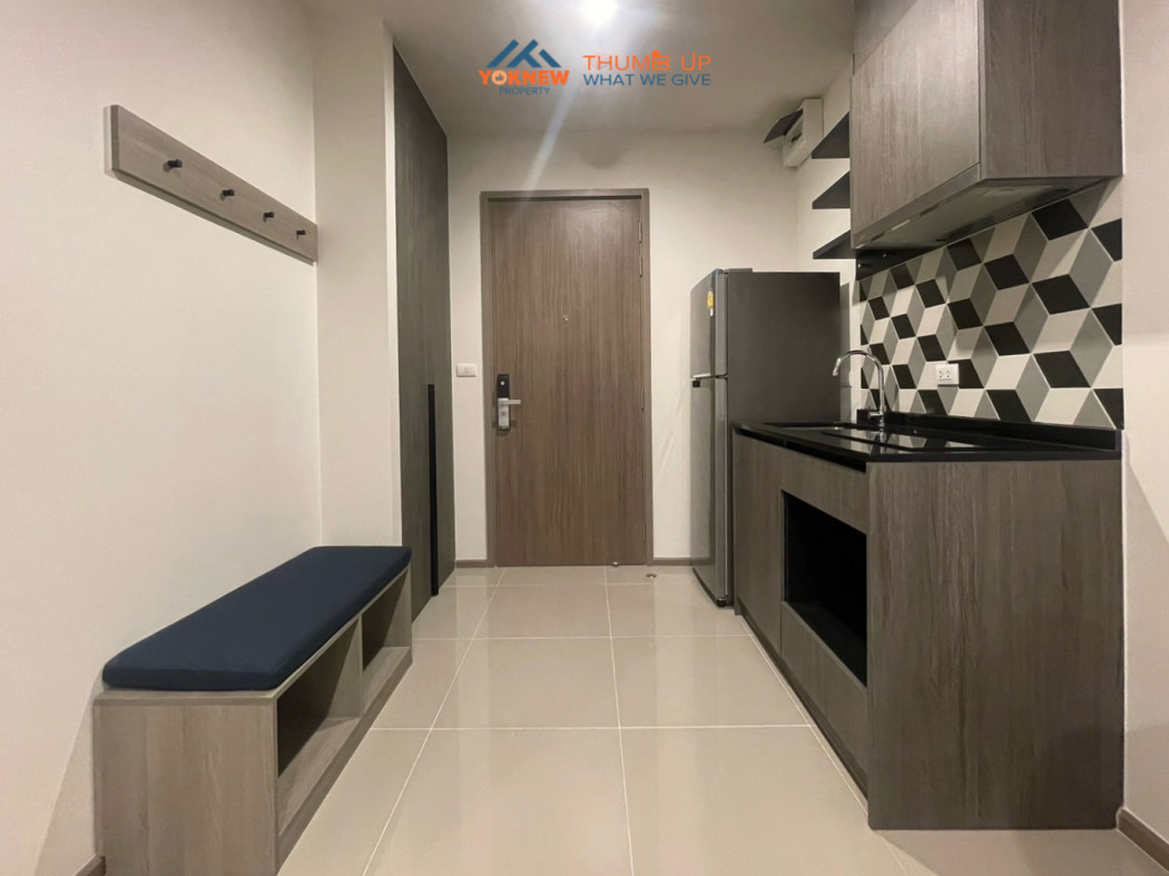ให้เช่าคอนโด ดี คอนโด อ่อนนุช สุวรรณภูมิ ห้องแบบสตูดิโอ ตกแต่งแบบมินิมอล ครัวกั้น