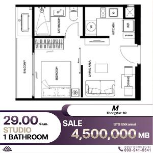 ขาย คอนโด M Thonglor 10 31 ตรม. 1 bed 1 bath 1 balcony 1 parking lot 1 kitchen 1 living