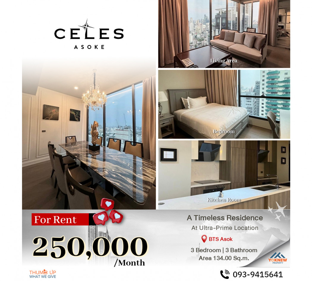 ให้เช่า คอนโด Celes อโศก 134 ตรม ชั้น 38 ใกล้ MRT สุขุมวิท