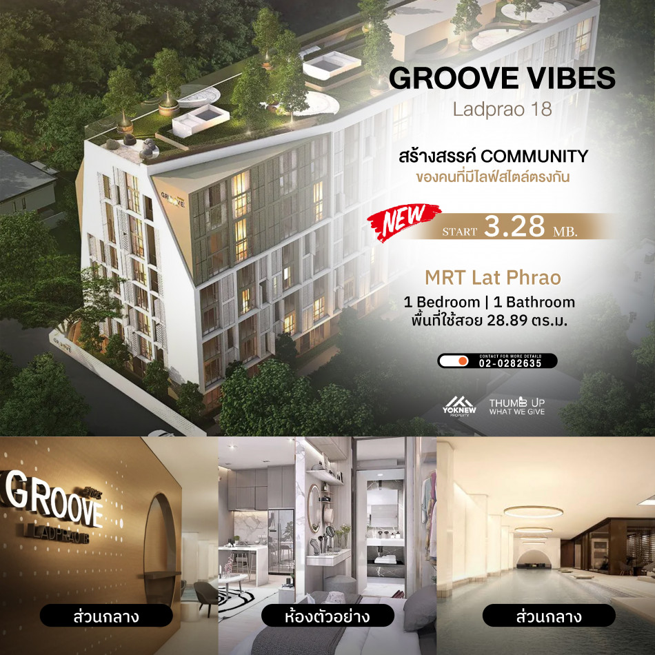 คอนโดใหม่ Groove Vibes Ladprao 18 ราคาเพียง 3.28 ล้านบาทใกล้ MRT ลาดพร้าว