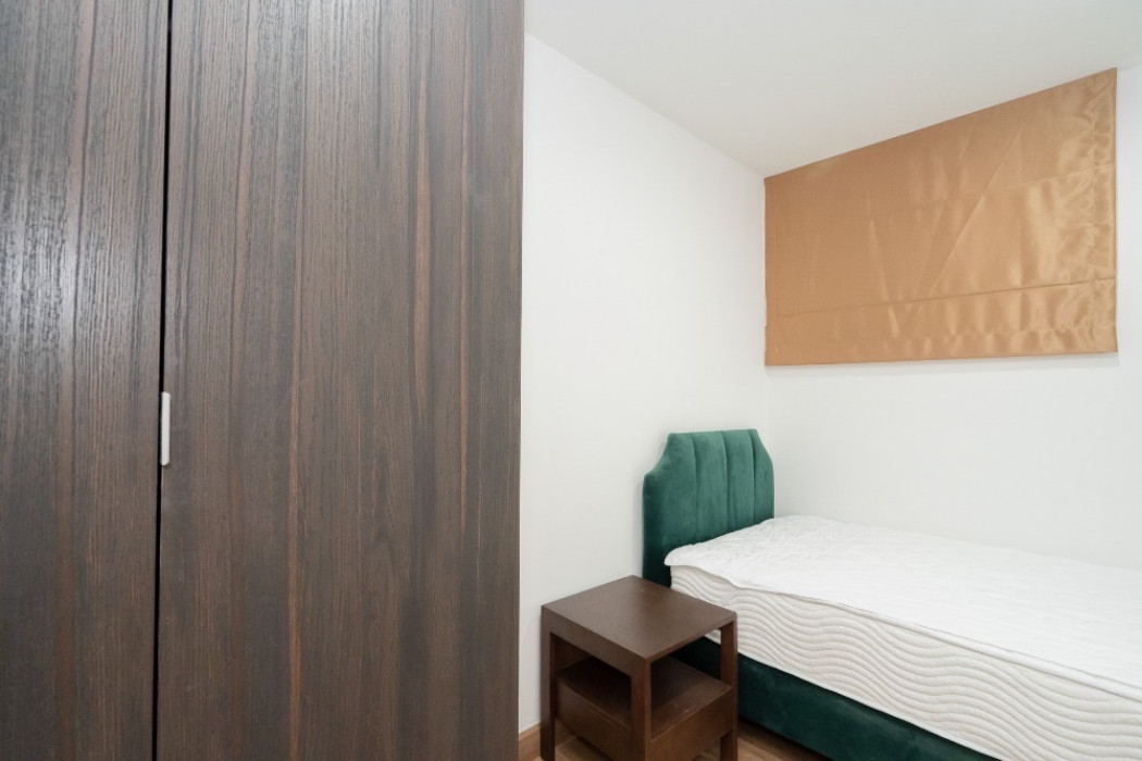 A spacious corner unit designed for comfort and convenience! This spacious apartment features three bedrooms, including a master bedroom with a king-size bed and a luxurious bathtub, another king-size bedroom, and a single bedroom, accommodating up to 5 occupants. With a total area of 111 sqm, you//'ll enjoy a large living room filled with natural light and a welcoming hallway. Step outside to a generous balcony, perfect for relaxing or entertaining. This apartment is an ideal choice for families looking for a comfortable stay in Bangkok!