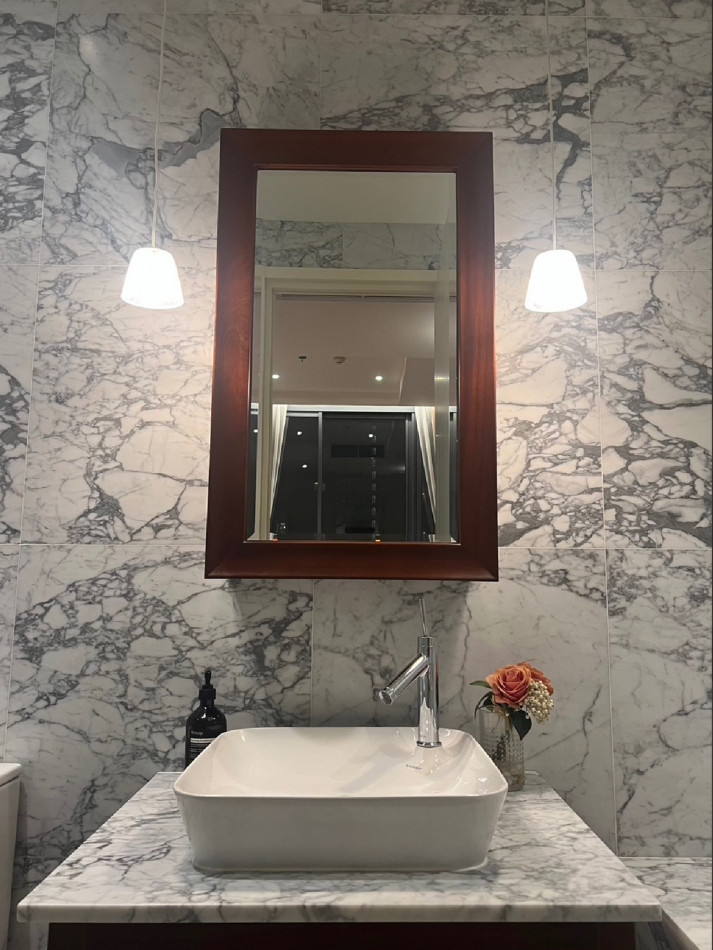 ว่างเช่า 1 ห้องนอน 1 ห้องน้ำ ห้องหรูตกแต่งมาอย่างสวยงาม ห้องน้ำลายหินอ่อน คอนโด Khun by yoo Sansiri