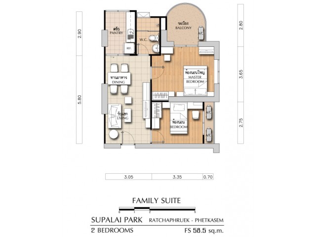 ศุภาลัยปาร์ค ราชพฤกษ์ 2 ห้องนอน แบบ Family Suite ชั้น 30 ห้อง 3014 ห้องมุม ทิศเหนือ วิวฝั่งราชพฤกษ์ อนุสาวรีย์พระเจ้าตากสิน วัดอรุณ และ