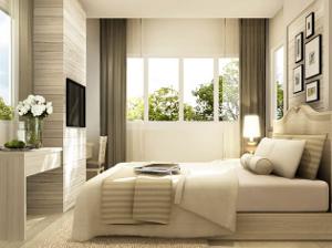 ห้อง 332 ห้องมุม วิวสระว่ายน้ำ มีการแบ่งห้องเป็นสัดส่วน คือ 1ห้องนอน