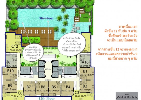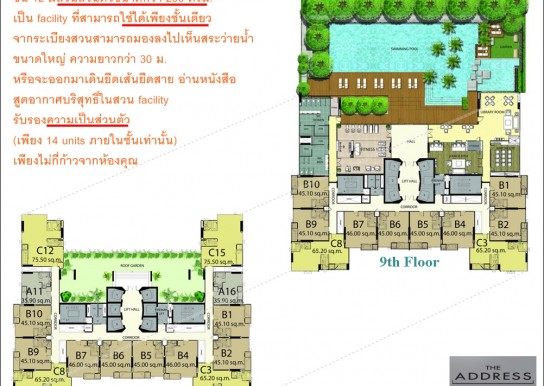 1ห้องนอน ขนาด 45.1 ตรม.ชั้น12(facility)ช้นเดียวในโครงการที่มีสวนส่วนตัวขนาดกว่า 200 ตรม. รับรองความเป็นส่วนตัวสุดๆ เพราะมีแค่ 14 unit เท่านั้นที่สามารถใช้ได้