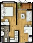 – พื้นที่ขนาด 34.60 ตร.ม. 1 ห้องนอน 1 ห้องน้ำ
