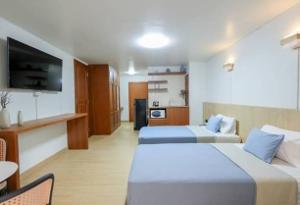 ทีวี, ตู้เย็น, เครื่องปรับอากาศ, ไมโครเวฟ,โต๊ะทานข้าว 2 ที่นั่ง, ตู้เสือผ้า, โต๊ะเครื่องแป้ง อ่างอาบนํ้าพร้อมเรนเชาเวอร์