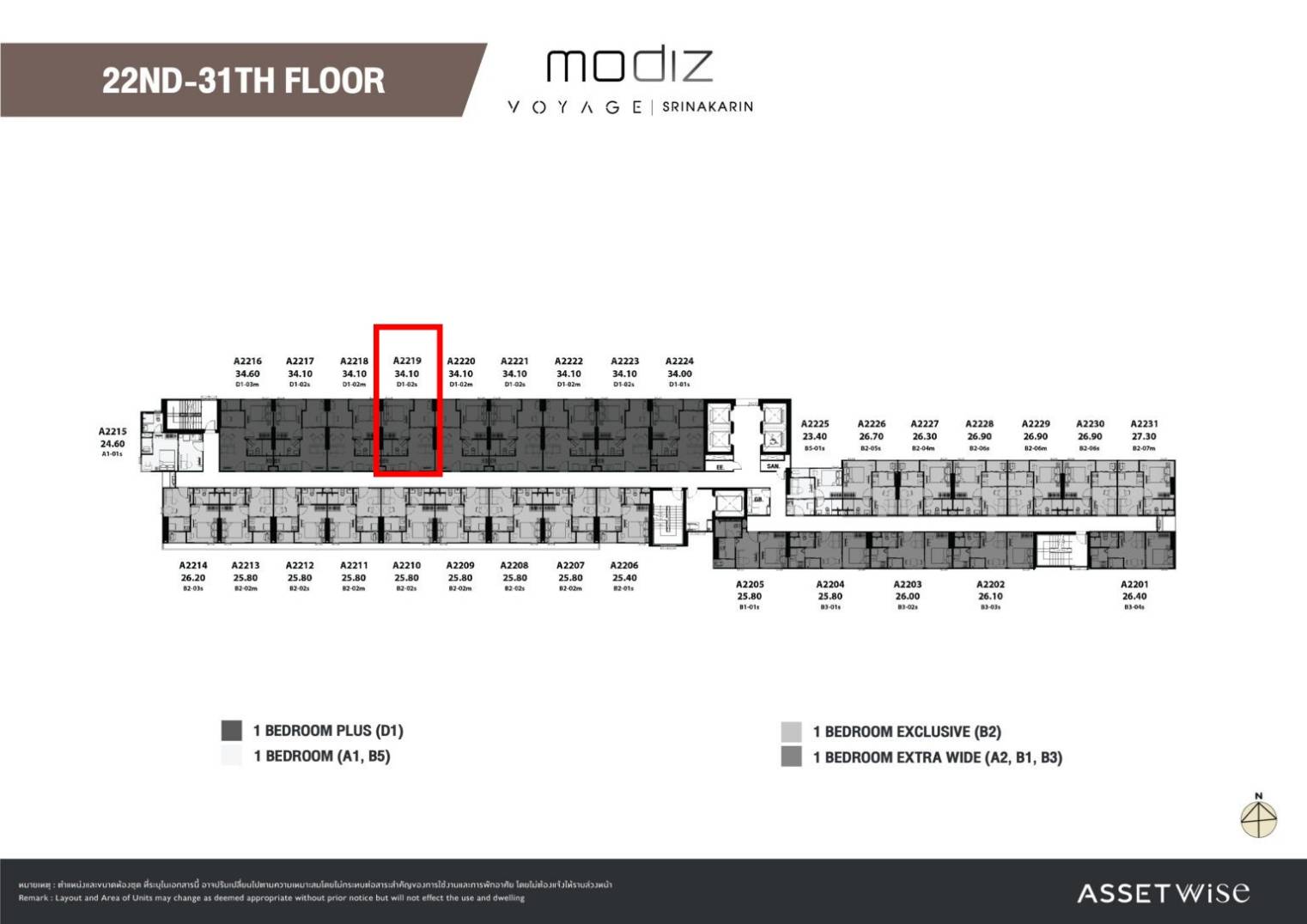 ห้องเลขที่ A2319 อาคาร A ชั้น 23 เนื้อที่ 34.10 ตร.ม.