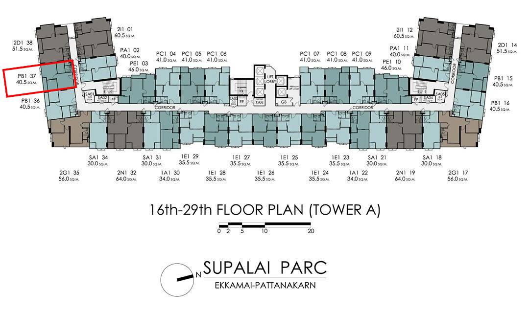 ห้องเลขที่ 3079-OA02837 อาคาร A ชั้น 28 เนื้อที่ 40.50 ตร.ม.